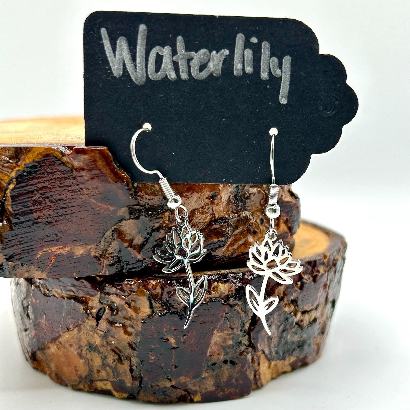 July - Waterlily Birth Flower Earrings. Sterling Silver.